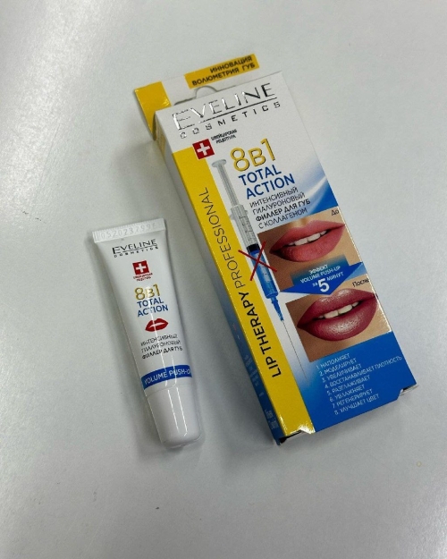№8936 Eveline Cosmetics Lip Therapy Proff. Гиалуроновый филлер, увеличивающий объем губ с Коллагеном TOTAL ACTION 8 в 1, 12 мл Eveline Cosmetics Lip Therapy Proff. Гиалуроновый филлер, увеличивающий объем губ с Коллагеном TOTAL ACTION 8 в 1, 12 мл